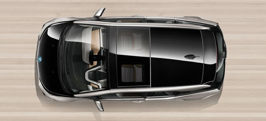 Charakterystycznym elementem tego wizualnie lekkiego wnętrza jest wolno stojąca kolumna kierownicy, która, ze względu na minimalizm przejawiający się w wyglądzie deski rozdzielczej, szczególnie przyciąga uwagę. Na kolumnie kierownicy znajdują się elementy obsługi bezpośrednio związane z jazdą, takie jak zestaw wskaźników, przełącznik start-stop oraz dźwignia zmiany biegów. Jasna warstwa wokół kolumny kierownicy zapewnia łatwe przechylenie fotelu kierowcy do przodu. Dźwignia zmiany biegów ma postać gałki, którą można wysuwać do przodu i do tyłu, wybierając w ten sposób żądany bieg: Pojazd porusza się w kierunku zgodnym z położeniem dźwigni.