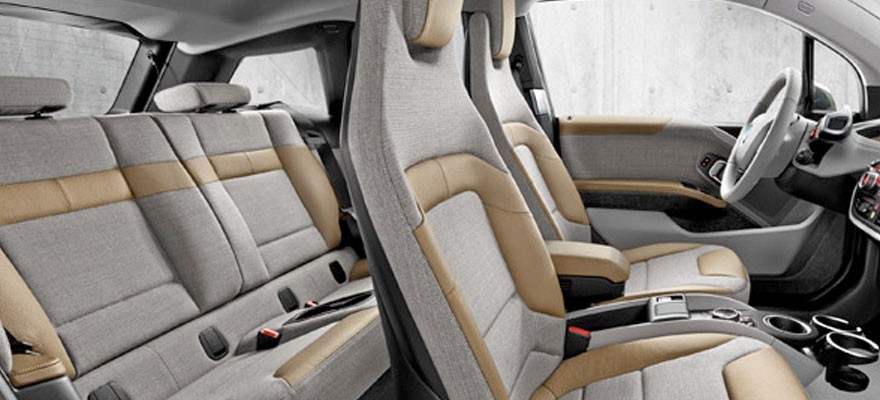 Wnętrze BMW i3 wyróżnia się bogatym zastosowaniem surowców naturalnych, takich jak np. włókno kenafu, które użyto do produkcji tapicerki drzwi. Kenaf jest rośliną niezwykle trwałą, z charakterystyczną strukturą włókien, która jest widoczna nawet po obróbce, co spełnia wymóg związany ze stylistyką samochodu BMW i jako samochodu z segmentu premium. Jeśli chodzi o elementy skórzane, użyto w nich wyłącznie naturalnie garbowanej skóry o jakości i haptyce, które odpowiadają wysokim standardom BMW.
