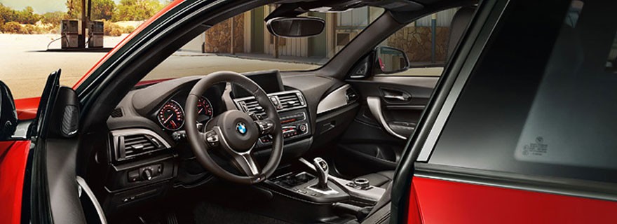 Wewnątrz auta pakiet sportowy M oferuje listwy progowe M i sportowe fotele przednie w tapicerce Hexagon z tkaniny i alcantary w kolorze antracytowym z kontrastującymi szwami w kolorze królewskiego błękitu i ekskluzywną stylistyką M. Inne elementy pakietu sportowego M to podnóżek M, krótsza dźwignia biegów z logo M, kierownica skórzana M z przyciskami wielofunkcyjnymi oraz zestaw wskaźników z prędkościomierzem i obrotomierzem z czerwoną skalą i czerwonymi pierścieniami. Sportowy, chłodny wygląd zapewniają listwy wewnętrzne z aluminium Hexagon z listwą akcentową w kolorze niebieskim Estoril. Sportową atmosferę tworzy też oświetlenie wnętrza o zmiennym kolorze pomarańczowoczerwonym lub białym. Całość uzupełnia antracytowa podsufitka BMW Individual. Pakiet sportowy M zamyka pilot ze wstawką w kolorze niebieskim Estoril.
