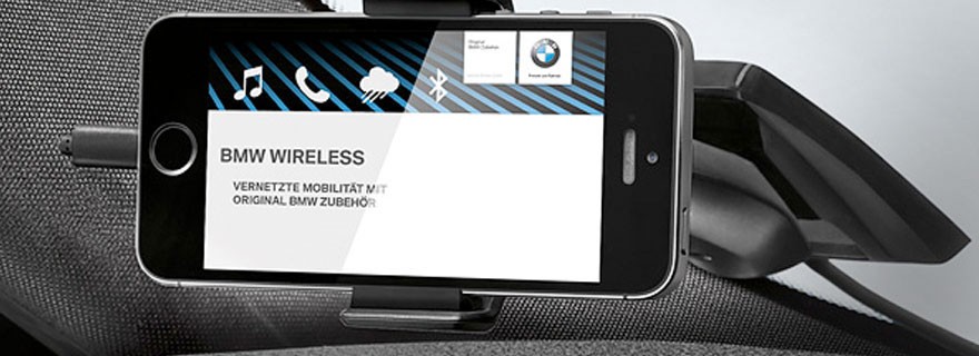 Uchwyt do iPhone'a 5 specjalnie zaprojektowany przez BMW umożliwia pewne zamocowanie smartfonu i optymalnie komponuje się z wnętrzem Twojego BMW. Przykleja się go w prosty sposób do przedniej szyby i jest od razu gotowy do użycia – w pozycji pionowej i poziomej. To kompletne rozwiązanie zawiera wszystko, czego trzeba do zamocowania i ładowania Twojego smartfonu w pojeździe.